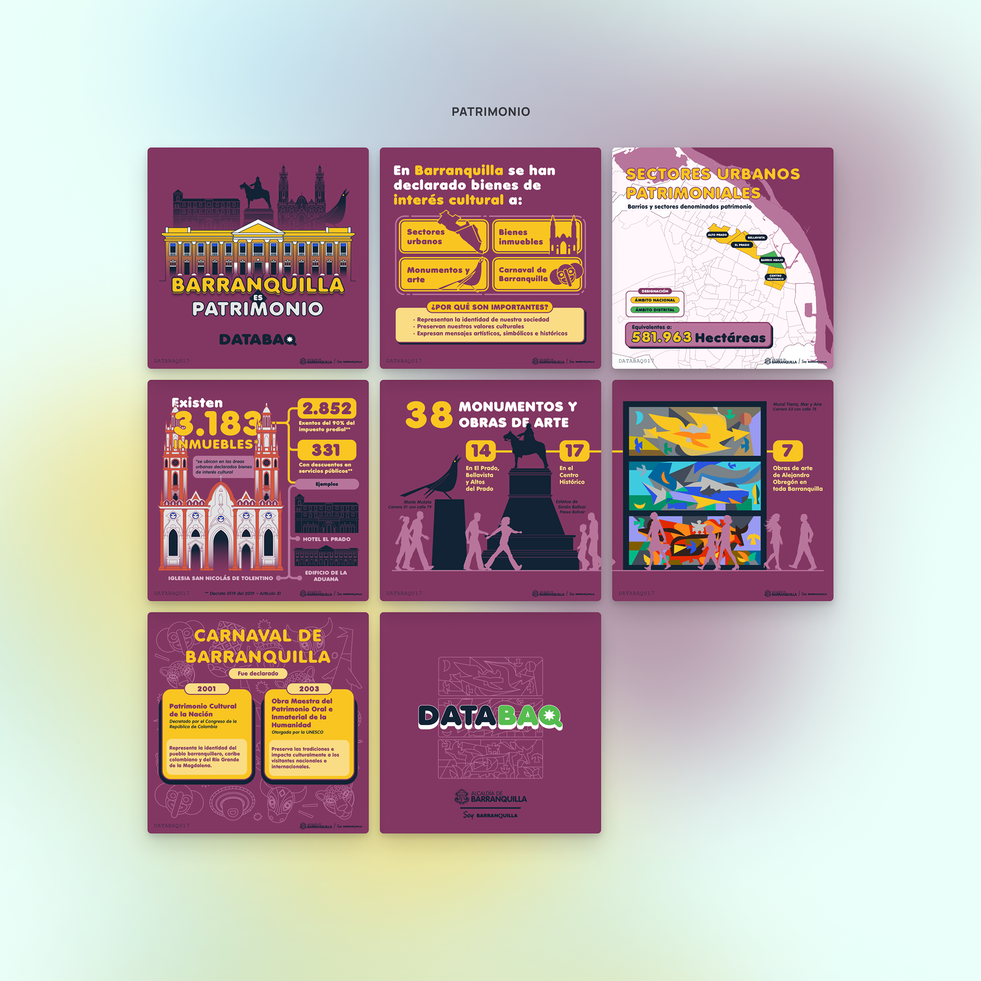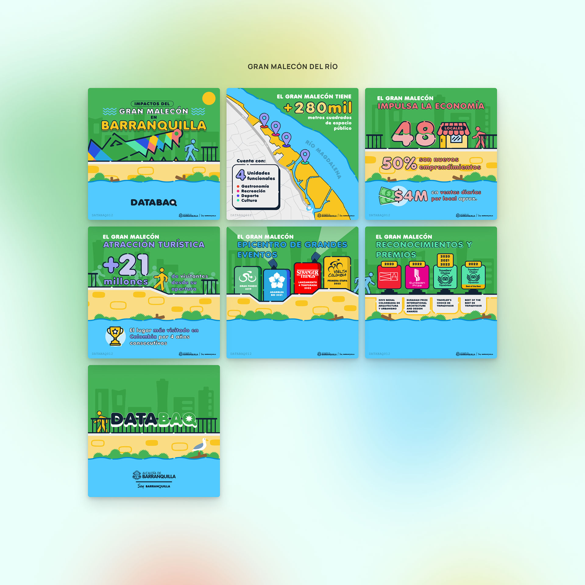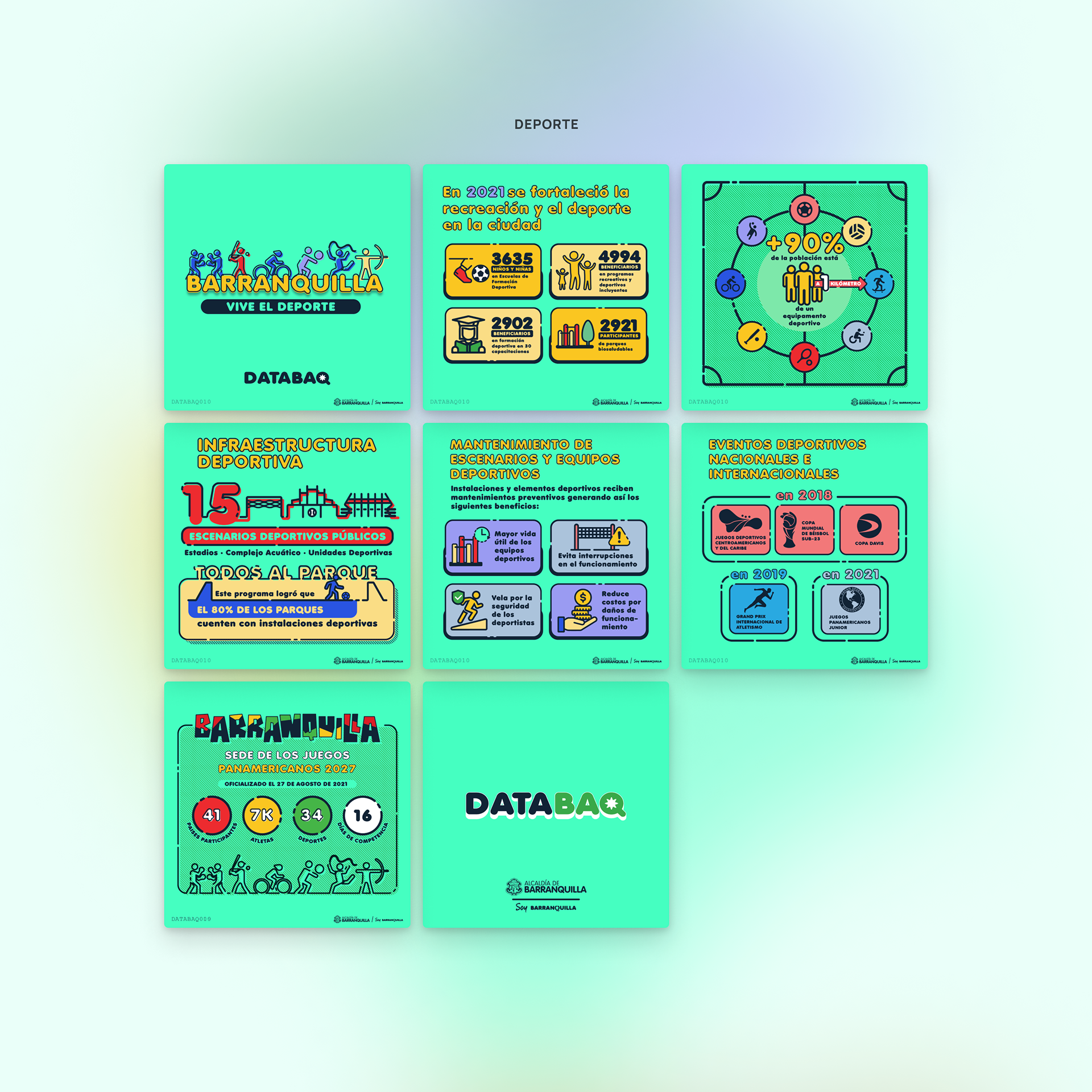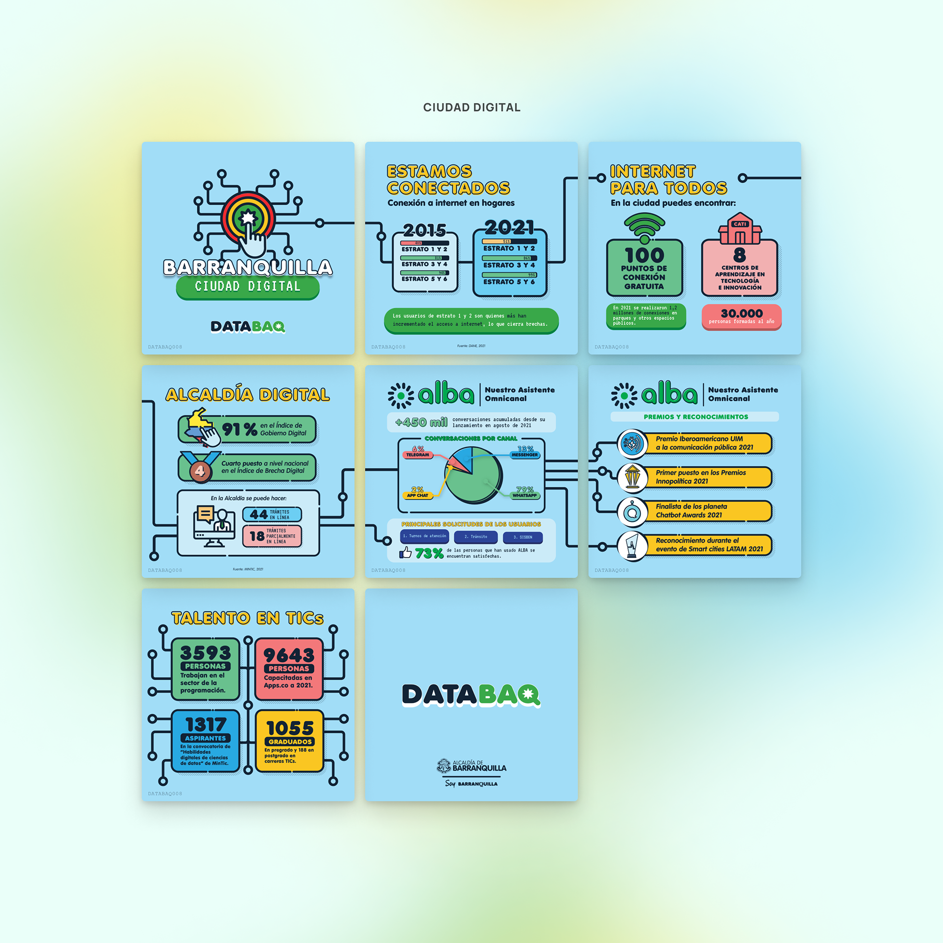 DATABAQ infographics 📊 pretend to communicate qualitative and quantitative data about different issues around Barranquilla in fun, easy, and aesthetic ways. Like the saying goes ”A picture is worth a thousand words”.