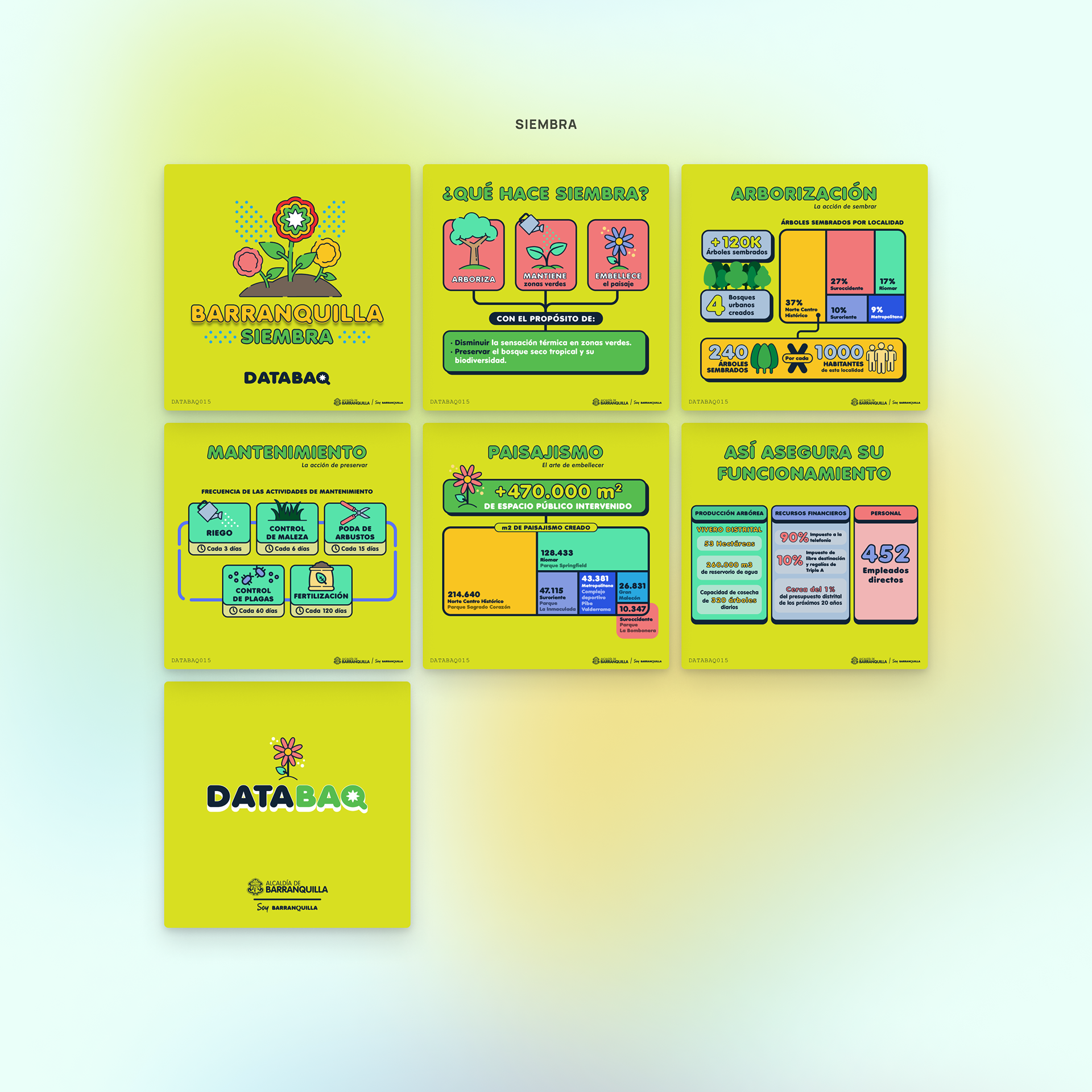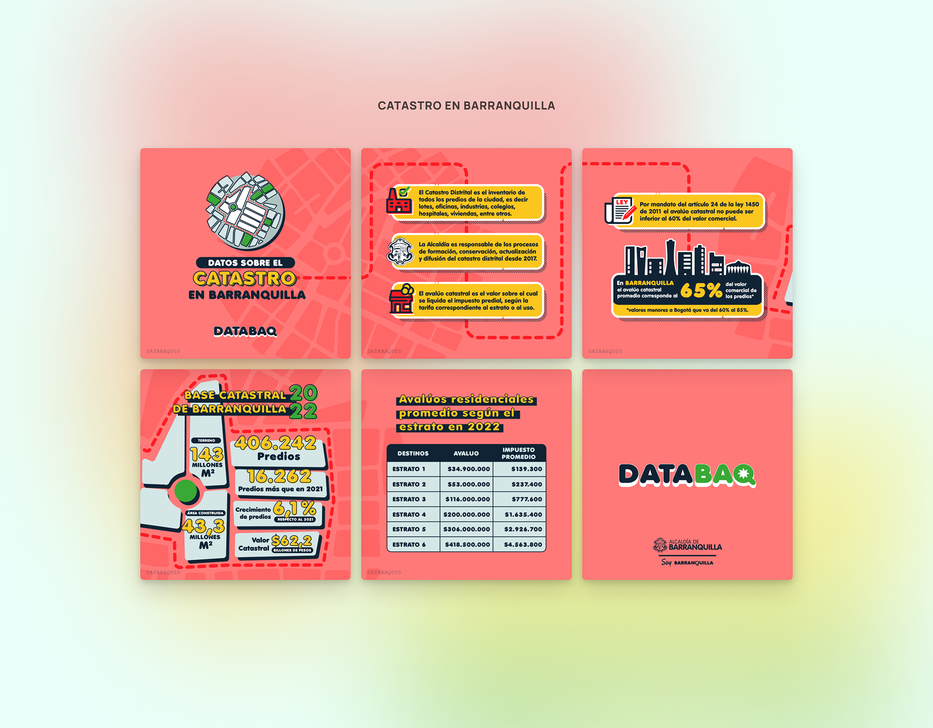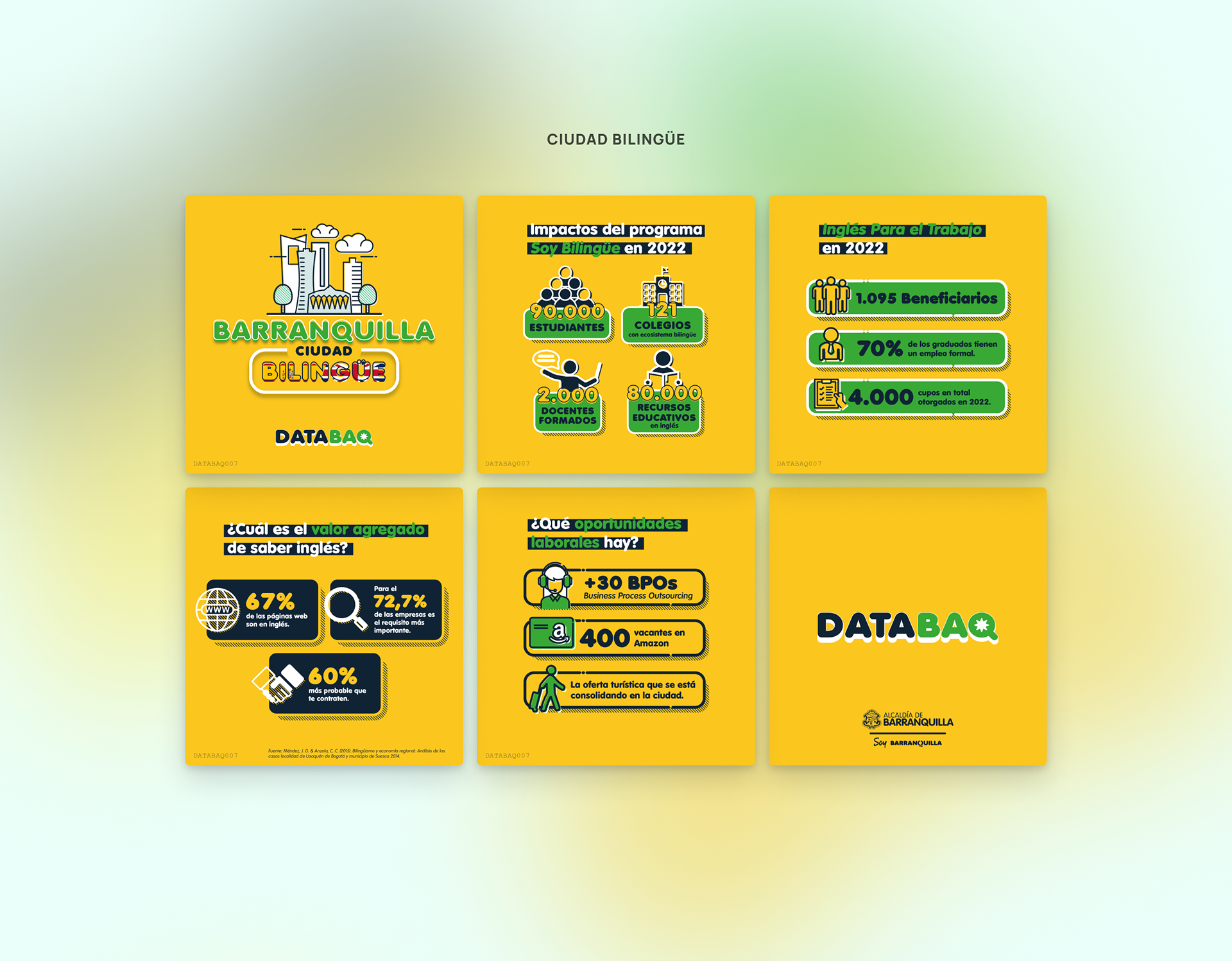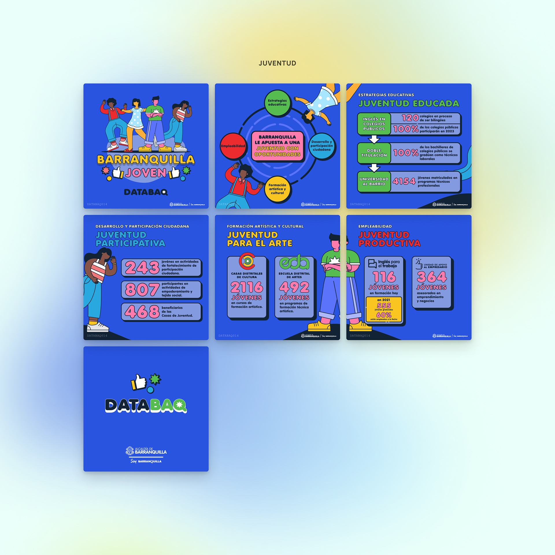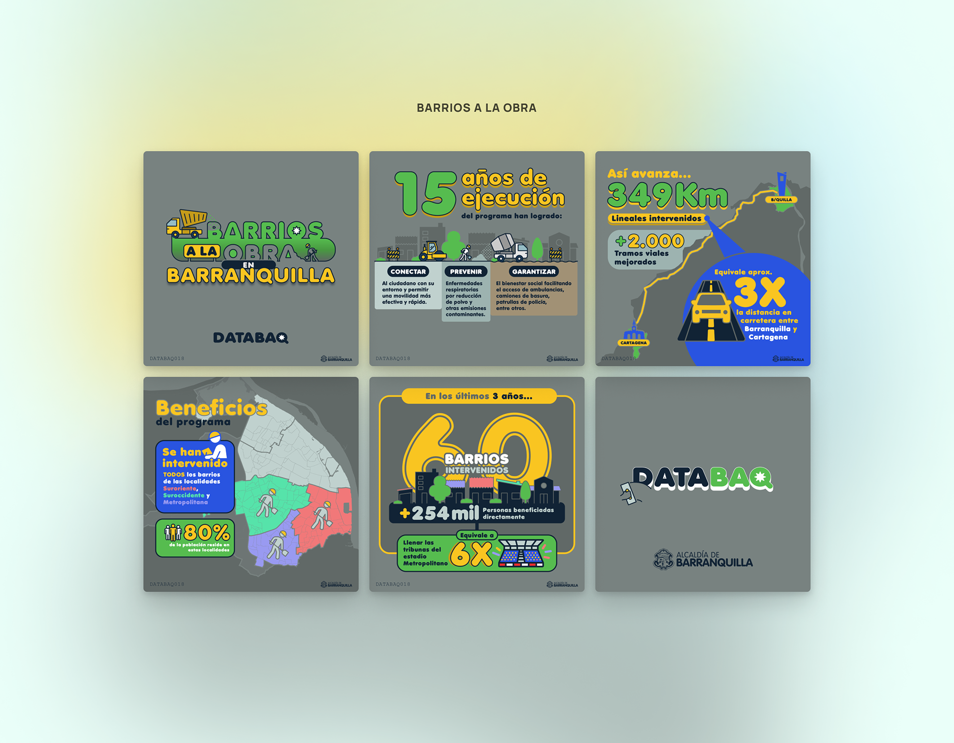 DATABAQ infographics 📊 pretend to communicate qualitative and quantitative data about different issues around Barranquilla in fun, easy, and aesthetic ways. Like the saying goes ”A picture is worth a thousand words”.