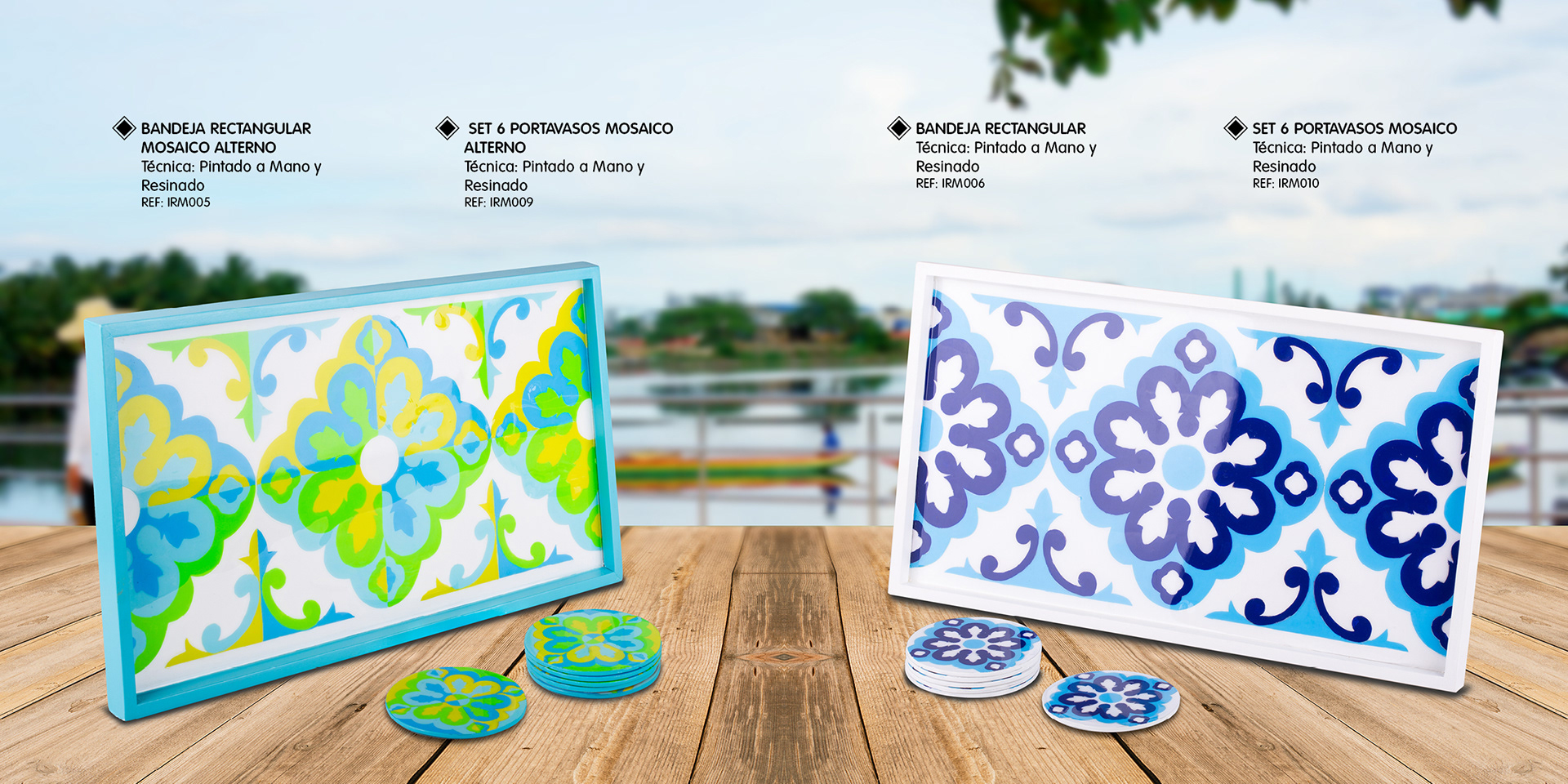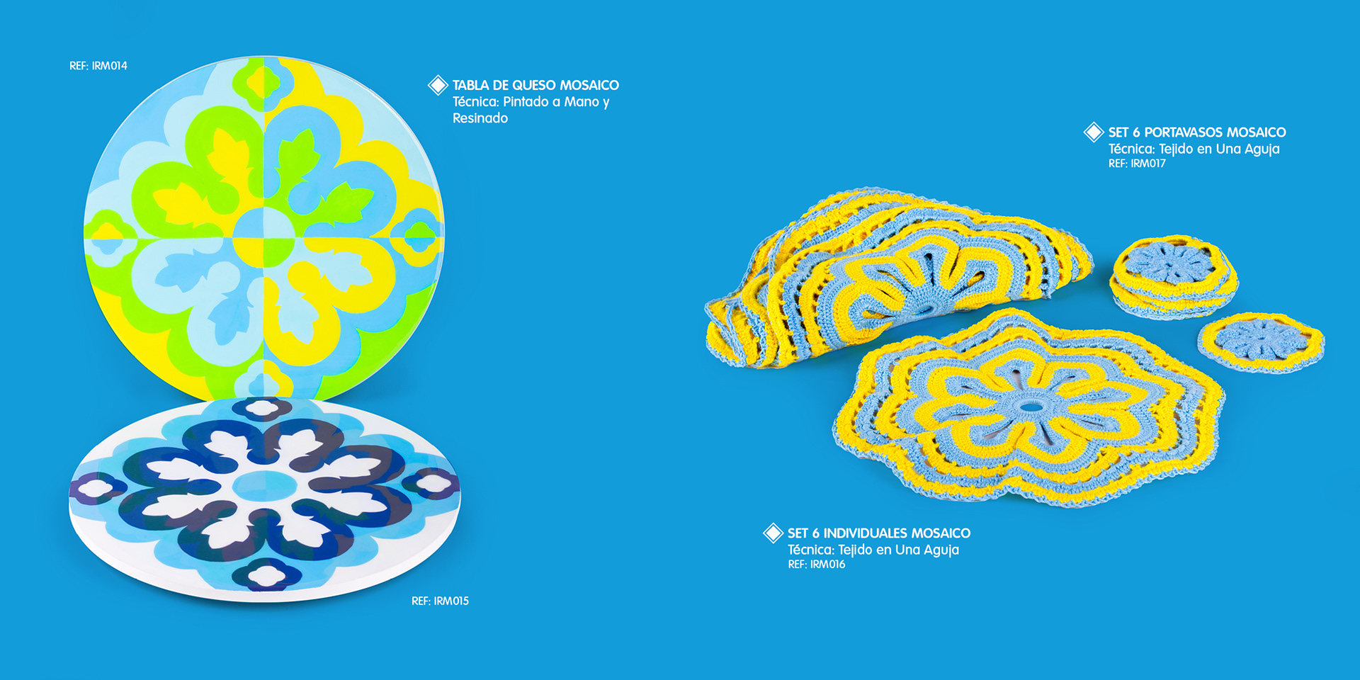 Product design for kitchen and table inspired in architecture, mosaics, Magdalena River and Caribbean Sea.